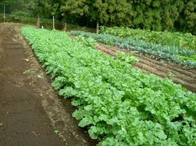 大根と芽きゃべつ、奥の方はサトイモです。